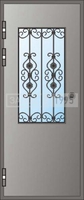 Термодверь МДФ шпон (окрас RAL) с кованой решеткой и стальным декором