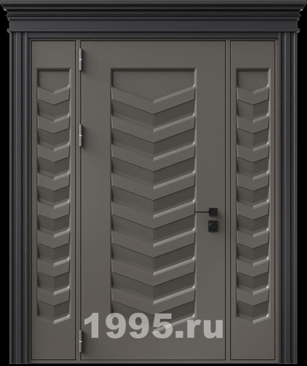 Стальная дверь с металлофиленкой, вставками по бокам, карнизом и порошковым покрытием RAL 7022 (тип №8)