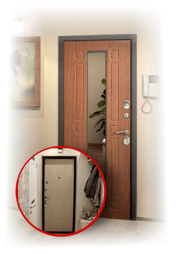 Использование зеркала в металлических дверяхИспользование зеркала в металлических дверях